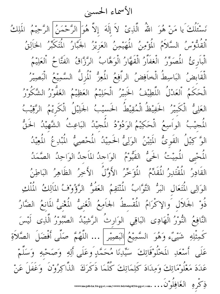 Zikir asmaul husna lirik rumi bahasa arab. Asmaul husna from himpunan zikir, doa & selawat harian. Selain berpahala, menghafalkan asmaul husna juga memiliki . Lirik lagu teks asmaul husna latin lirik robbi lahul asma ul husna arab dan latin nadhom asmaul husna dan do a .